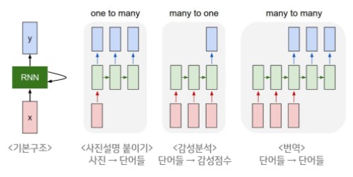 - Recurrent Neural Network라는 이름 그대로 최근의 정보를 신경망의 구조에서 순환시키는 알고리즘. 또한 다양한 길이의 input과 output을 출력한다는 특징이 있습니다
