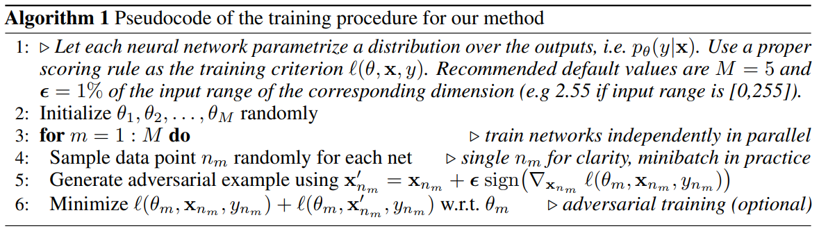 - 논문에서 제시하는 recipe는 간단합니다. (1) proper scoring rule사용 as training criterion (2) AT(Adversarial Training) (3) train an ensemble